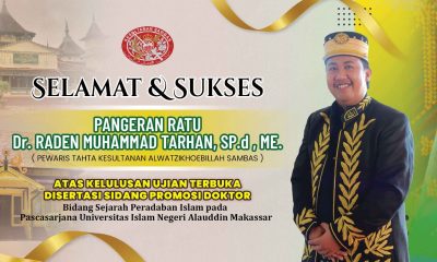 Mercusuar.Co.Id — Kabar membanggakan datang dari Kesultanan Sambas. Pangeran Ratu, Dr. Raden Muhammad Tarhan, S.Pd., M.E., yang dikenal sebagai pewaris tahta Kesultanan Alwatzikhoebillah Sambas, berhasil menorehkan...