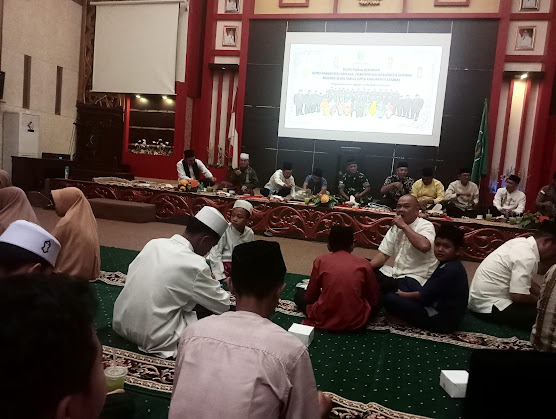Agenda yang digelar dalam rangka memeriahkan bulan suci Ramadan 1447 Hijriah itu diawali dengan pembacaan ayat suci Al-Qur’an, kemudian dilanjutkan dengan sambutan Ketua DPRD Kabupaten Sambas, Abu Bakar.
